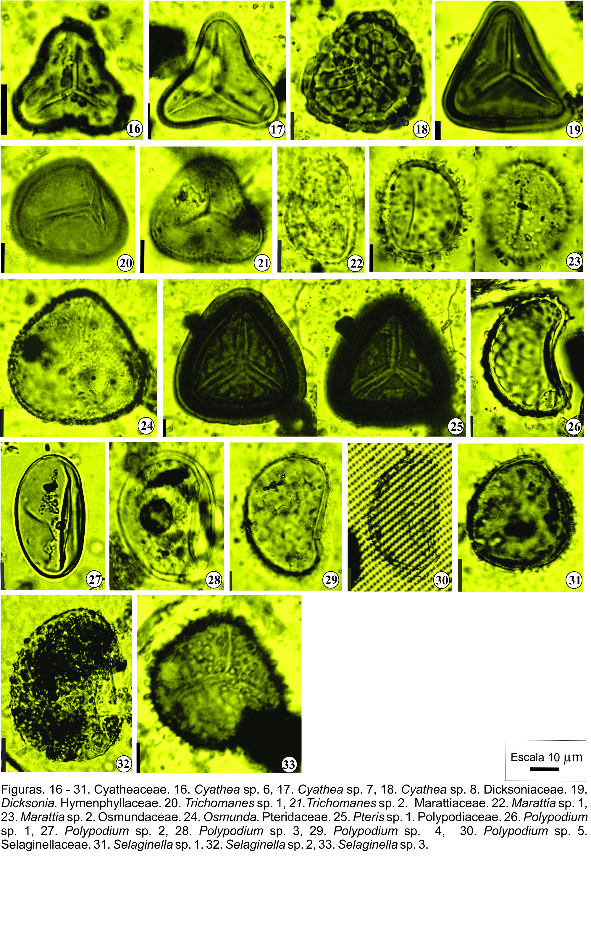 O presente trabalho teve como objetivo central a identificação e a descrição dos palinomorfos presentes nos sedimentos quaternários dos lagos Juparanã e Durão na região centro-norte do Estado do Espírito Santo, no Brasil, dentro do domínio do ecossistema de Mata Atlântica. Os sedimentos mais antigos encontram-se na base do testemunho do Lago Durão (26.732 cal. anos A.P.). Os resultados deste estudo forneceram importante ferramenta, como manual de identificação de grãos de pólen e esporos, para futuros trabalhos palinológicos quaternários que envolvam vegetação nesse ecossistema. Os sedimentos desses lagos mostraram-se ricos em esporos e grãos de pólen, morfologicamente bem preservados. Neste trabalho são apresentados os palinomorfos não polínicos, que constam de esporos de 8 algas e de 25 pteridófitas.