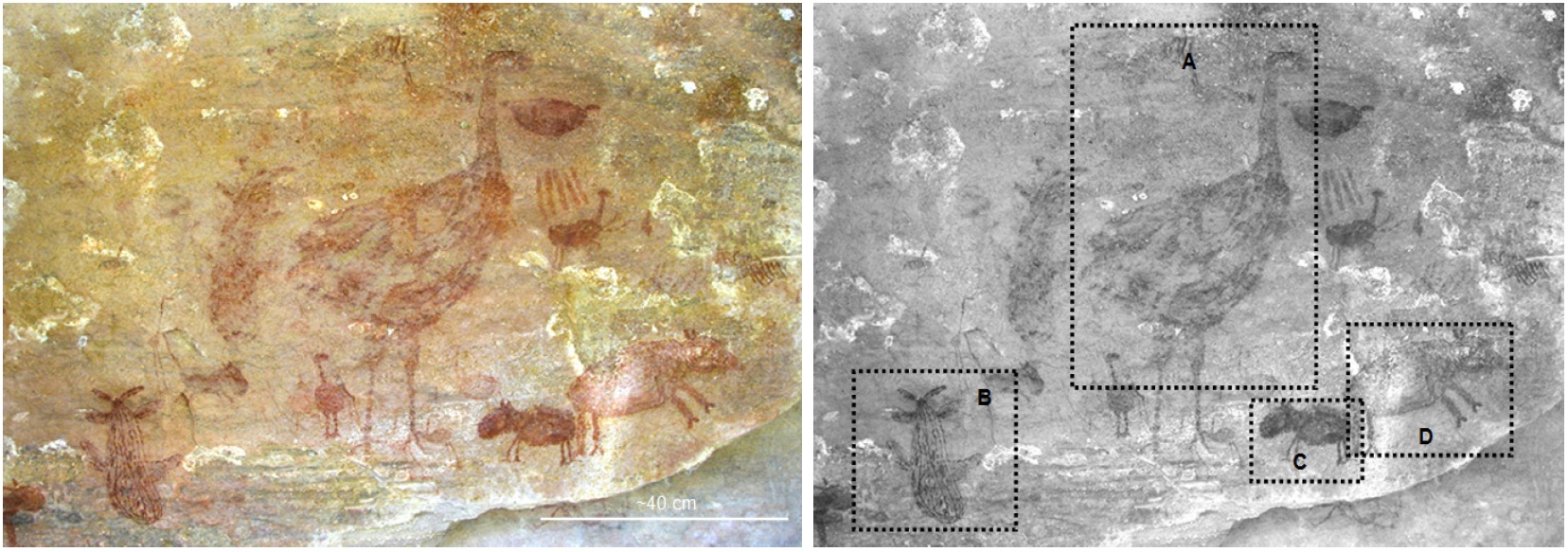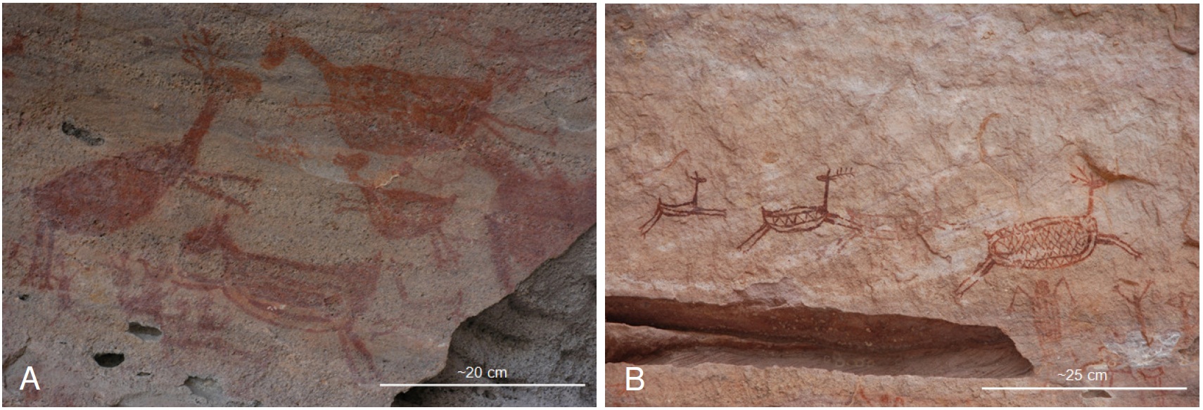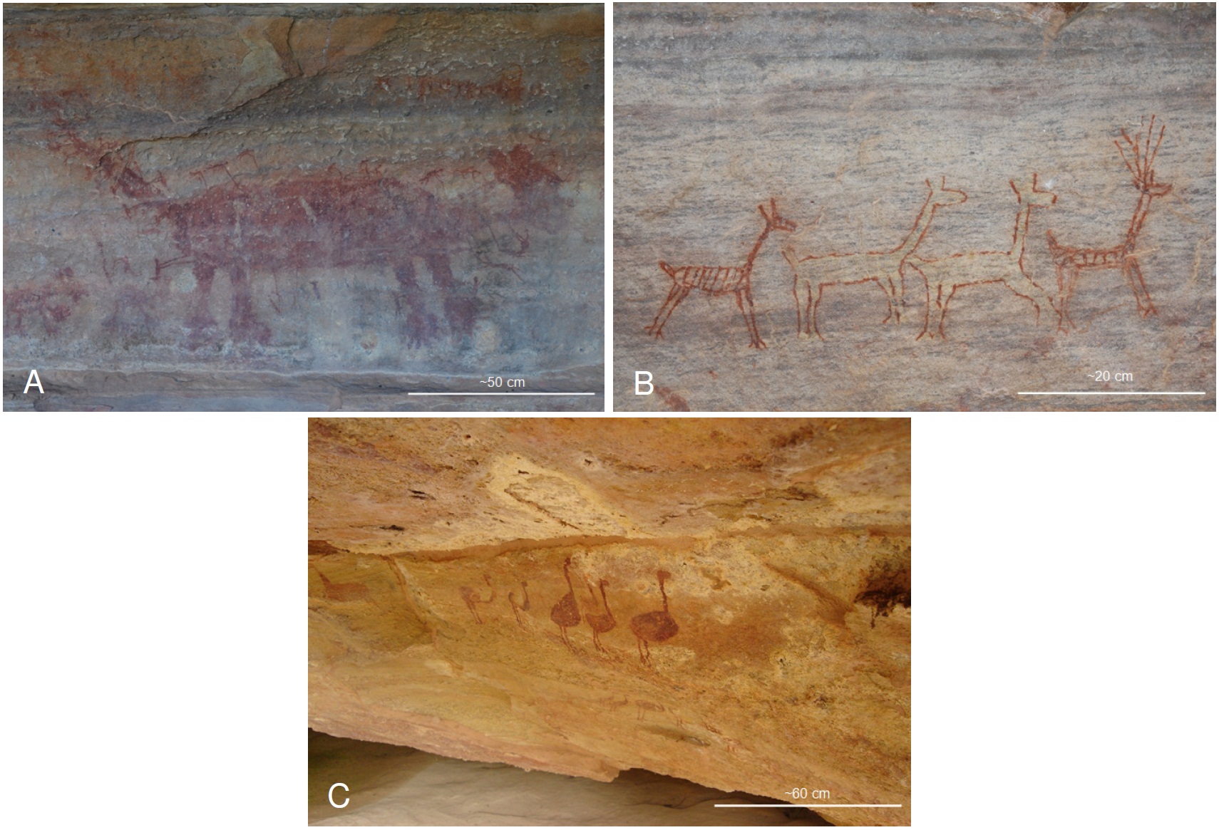 No Parque Nacional Serra da Capivara – P.N.S.C. e adjacências existe uma concentração muito grande de sítios arqueológicos que fornecem informações diversificadas sobre as primeiras ocupações humanas na América, pois retratam muitas características de sua existência nos diferentes ecossistemas da região. São encontrados no parque mais de 1.000 sítios cadastrados (não definitivos), dos quais, cerca de 657 apresentam pinturas rupestres; os demais sítios são aldeias, cemitérios e acampamentos. As pinturas rupestres apresentam cenas do cotidiano como caça, sexo, parto, brincadeiras, lutas sociais, namoro e ritos. Tais pinturas possuem variadas funções, que revelam que a vida diária dos primeiros ocupantes do território era muito dinâmica, podendo fornecer indicativos de que houve história, educação, socialização, comunicação e religiosidade em tempos pretéritos da história do Brasil. É possível reconhecer nas pinturas – a partir das variadas representações rupestres zoomorfas e suas prováveis interpretações – espécies inexistentes hoje na região e outras totalmente extintas; algumas são tão bem elaboradas, que é possível reconhecer o sexo do animal gravado, por meio da presença de galhadas e outras características determinantes de gênero nas espécies. São comuns reproduções de caranguejos, lagartos, siriemas, tatus, pacas, felinos, jacarés, coatis, camelídeos, veados galheiros e capivaras - estes últimos desaparecidos da região, no presente extremamente árida para abrigá-los, cuja presença permitiu levantar a hipótese da existência de um clima mais úmido em um passado não muito remoto. Outra espécie frequentemente reproduzida nas pinturas é a ema Rhea americana, exterminada na região há não muito tempo. A partir da identificação e do estudo aprofundado da fauna representada nas pinturas rupestres do Parque Nacional Serra da Capivara, e das informações auferidas na literatura, busca-se reconstruir as prováveis condições ambientais do período em que elas foram feitas, tornando-se, assim, um confiável indicador paleoambiental.Downloads