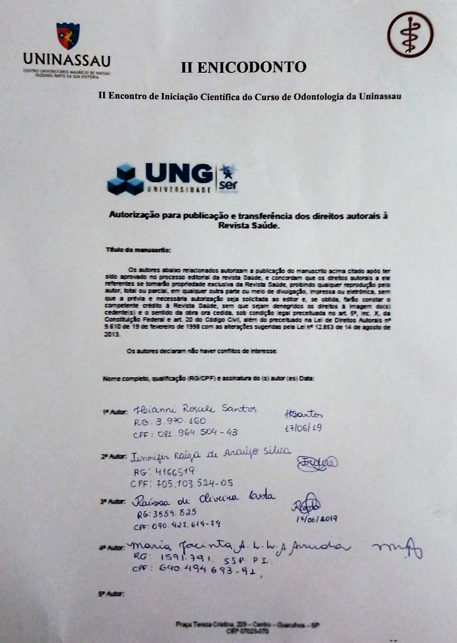 II ENCONTRO DE INICIAÇÃO CIENTÍFICA DE ODONTOLOGIA-UNINASSAU(CAMPINA GRANDE-PB)