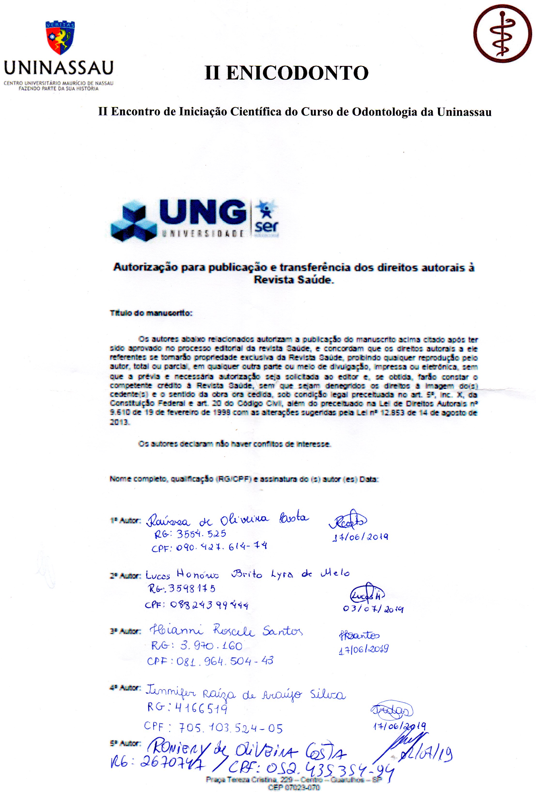 • Roniery de Oliveira Costa Professor do curso de Odontologia da Uninassau - Centro Universitário Maurício de Nassau.