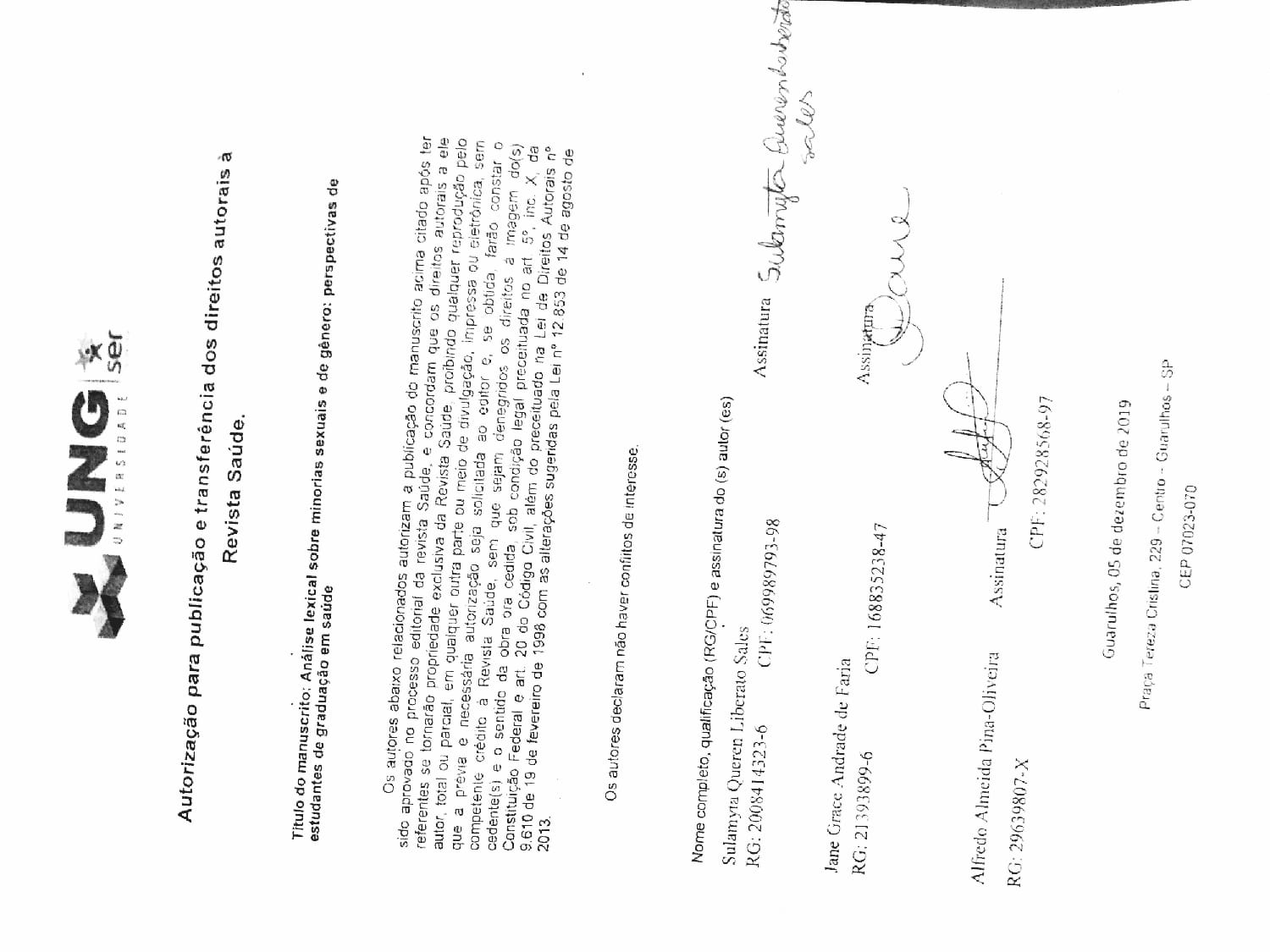 Jane Grace Andrade de Faria, Universidade Universus Veritas Guarulhos (UNIVERITAS-UNG Guarulhos)