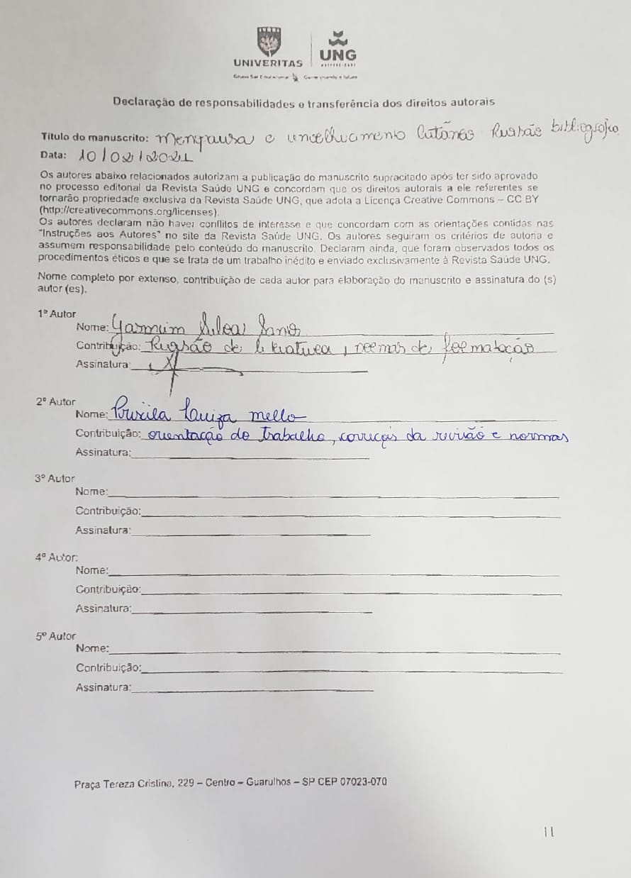 • Yasmim Silva Santos Acadêmica do curso de Biomedicina da Universidade Univeritas – UNG.