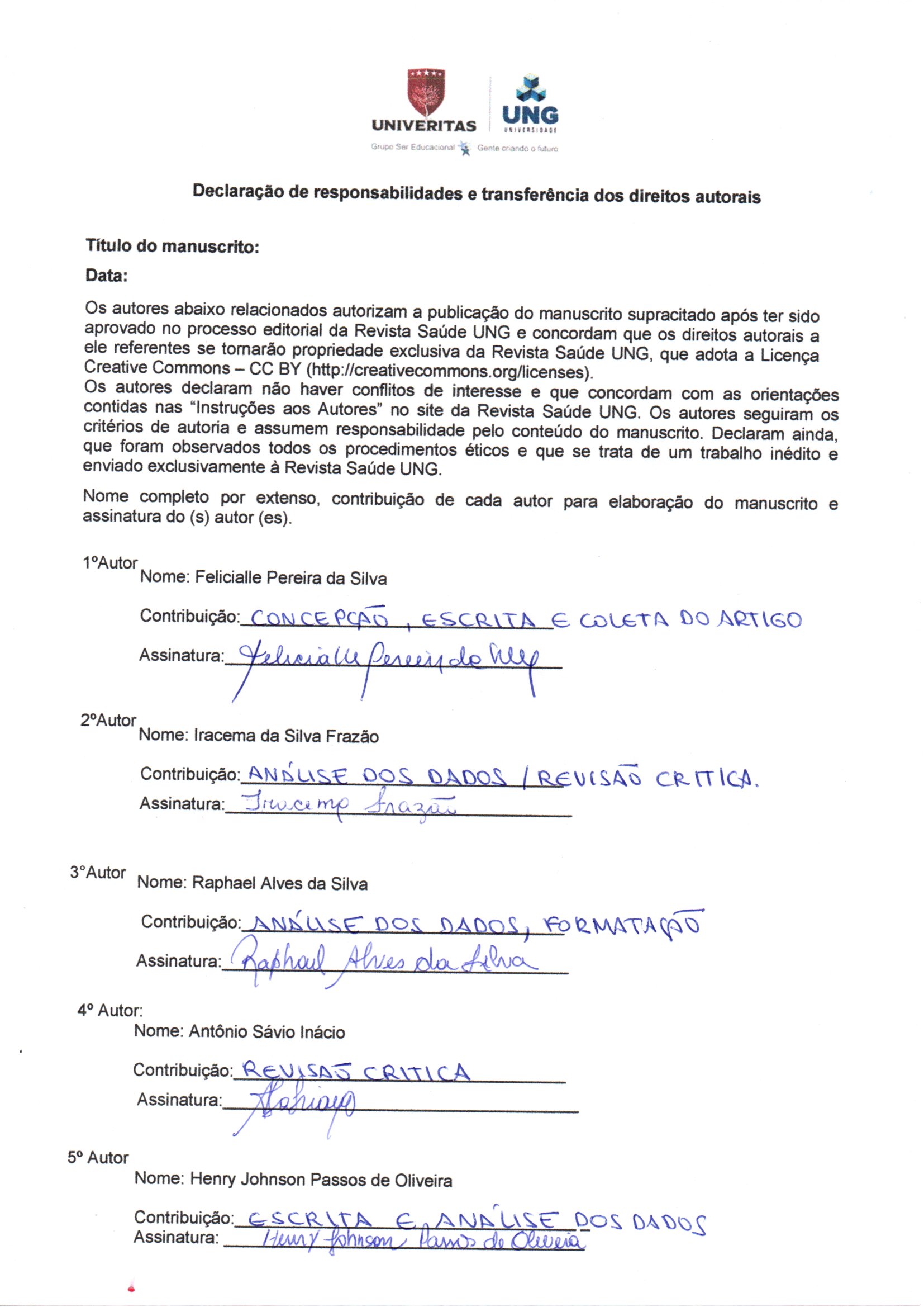 • Felicialle Pereira da Silva Universidade de Pernambuco- UPE, Departamento de Enfermagem. Recife, Pernambuco, Brasil.